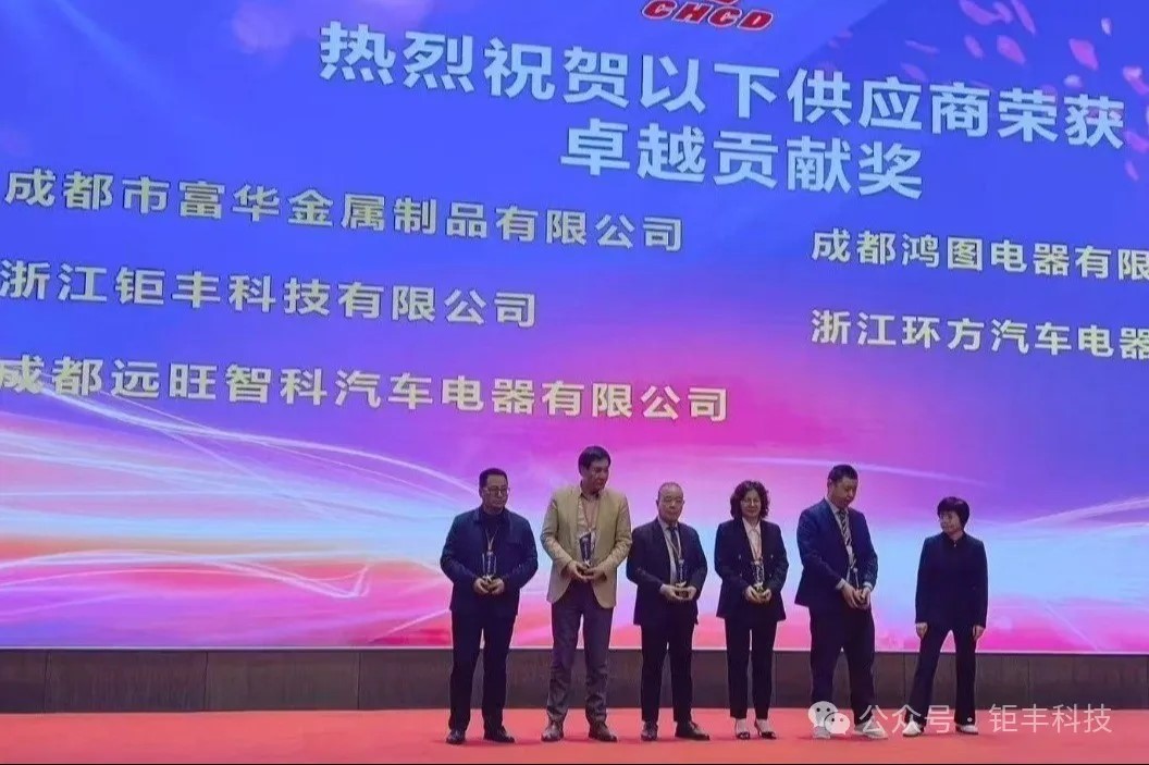 Le 29 mars 2025, des représentants de Zhejiang Jufeng Technology Co., Ltd. se sont rendus à Chengdu pour assister à la conférence annuelle des fournisseurs de Chengdu Huachuan Electrical Equipment Co., Ltd. et ont remporté le « Prix d'excellente contribution ».